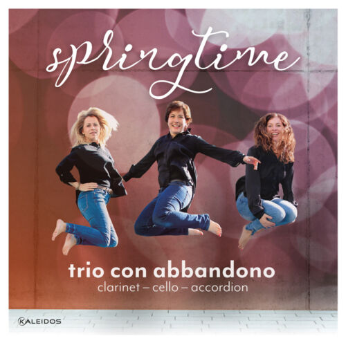 Abwechslungsreich und voller Überraschungen… so präsentiert sich das trio con abbandono auf seinem Album „Springtime“ (Frühling) mit extravaganten Arrangements und lebendiger Spielfreude. Tango, Klezmer, Klassik und Neue Musik – hier stehen ganz selbstverständlich Werke unterschiedlichster Genres nebeneinander und so unternimmt die außergewöhnliche Klangformation mit Klarinette, Cello und Akkordeon eine inspirierende Reise durch die Jahreszeiten der Musikgeschichte. -