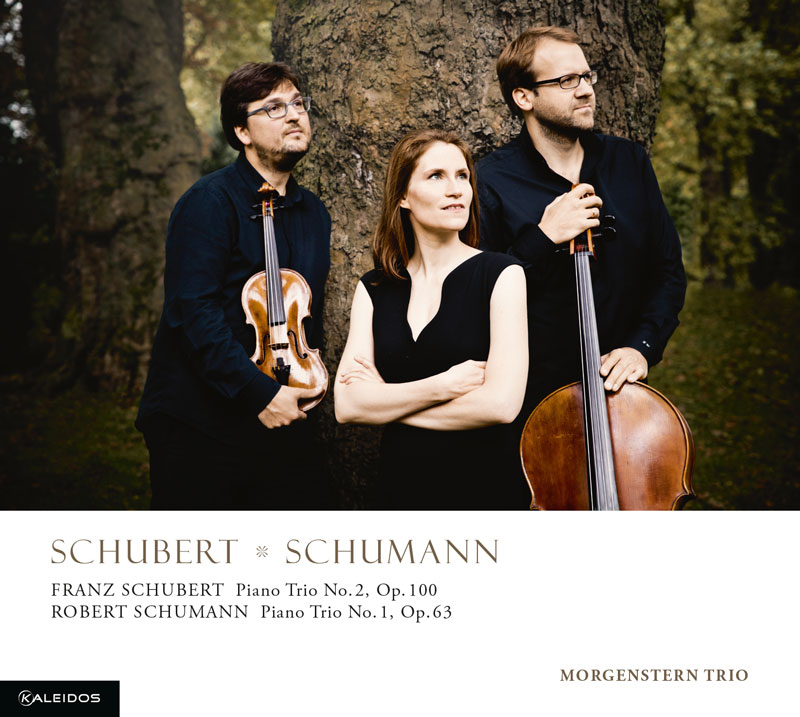 Auf ihrem KALEIDOS-Debutalbum widmet sich das mehrfach preisgekrönte MORGENSTERN TRIO zwei bedeutenden Werken der klassisch-romantischen Klaviertrio-Literatur. An der Schwelle zur Romantik steht das große Es-Dur Klaviertrio (Nr.2, op.100/D 929) von Franz Schubert (das für Robert Schumann zeitlebens Schuberts „Eigenthümlichstes“ blieb) und bildet gleichsam Gegenpol und Verbindung zugleich zur hochromantischen Konzeption des Schumann d-Moll Trios (Nr.1, op.63).