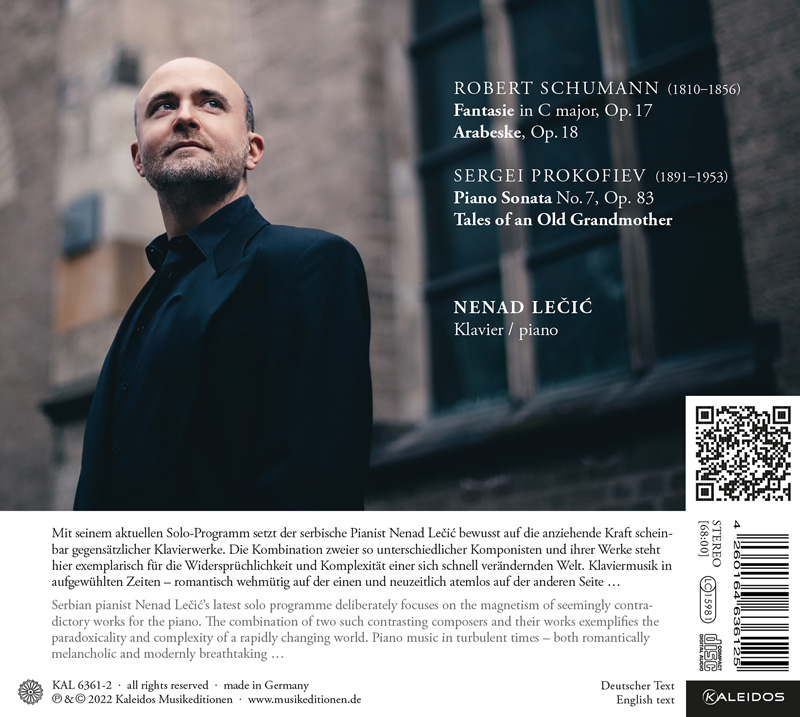“Zwei Komponisten, zwei musikgeschichtliche Epochen, die fast ein Jahrhundert auseinander liegen und ein Interpret, der mit seiner engagierten Diktion genau weiß, was er mit seinem Instrument und dem zugrunde liegenden Notenmaterial anfängt. Dies alles bündelt sich auf attraktive Weise bei der Aufnahme des serbischen Pianisten Nenad Lečič für das Label Kaleidos. […] Aber das mehrmalige Hören erschließt einen Bezug zwischen romantischer Tiefgründigkeit und modernem perkussiven Aufruhr. Vor allem, da sich Nenad Lečič als versiert genug erweist, um durch sein individuell prägende Handschrift ein übergreifendes verbindendes Element erlebbar zu machen. In Schumanns Fantasie in C-Dur wirken die Töne wie gemalt, was in entrückte, unserer lauten, fernen Welt so abhanden gekommene Gefühlstiefen eintauchen lässt. Aber wie Nenad Lečič die Akzente setzt und wie er Crescendi modelliert, das zeigt, wie er die Musik zur Sprache aus dem Heute werden lässt. […] Wie er messerscharf die Rhythmen dosiert, wie er Klarheit aufrecht erhält in den Tonballungen, wie er bei aller Spannung lupenreine Transparenz herrstellt – das dient wieder dem Wesenskern dieser Tonsprache, die sinnlich, fortschrittlich und auch in hohem Maße elegant ist.”