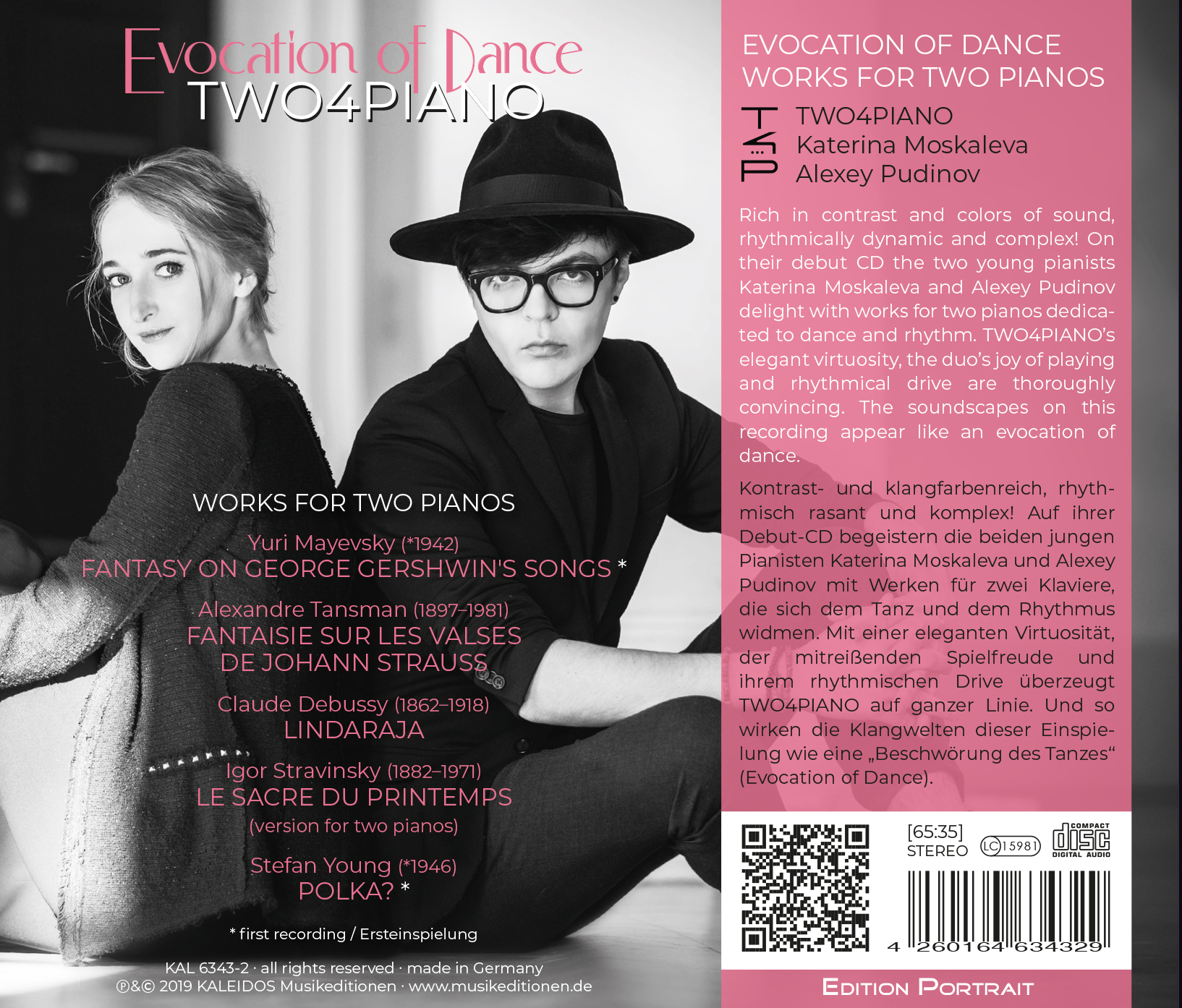 EVOCATION OF DANCE („Beschwörung des Tanzes“) – so heißt die Debut-CD des jungen Klavierduos TWO4PIANO. Und dieser Titel kann ebenso gut als Motto des gesamten Programms verstanden werden: Katerina Moskaleva und Alexey Pudinov geht es nämlich auch um den roten Faden, welcher durch die Themen Tanz und Rhythmus gesponnen wird.
